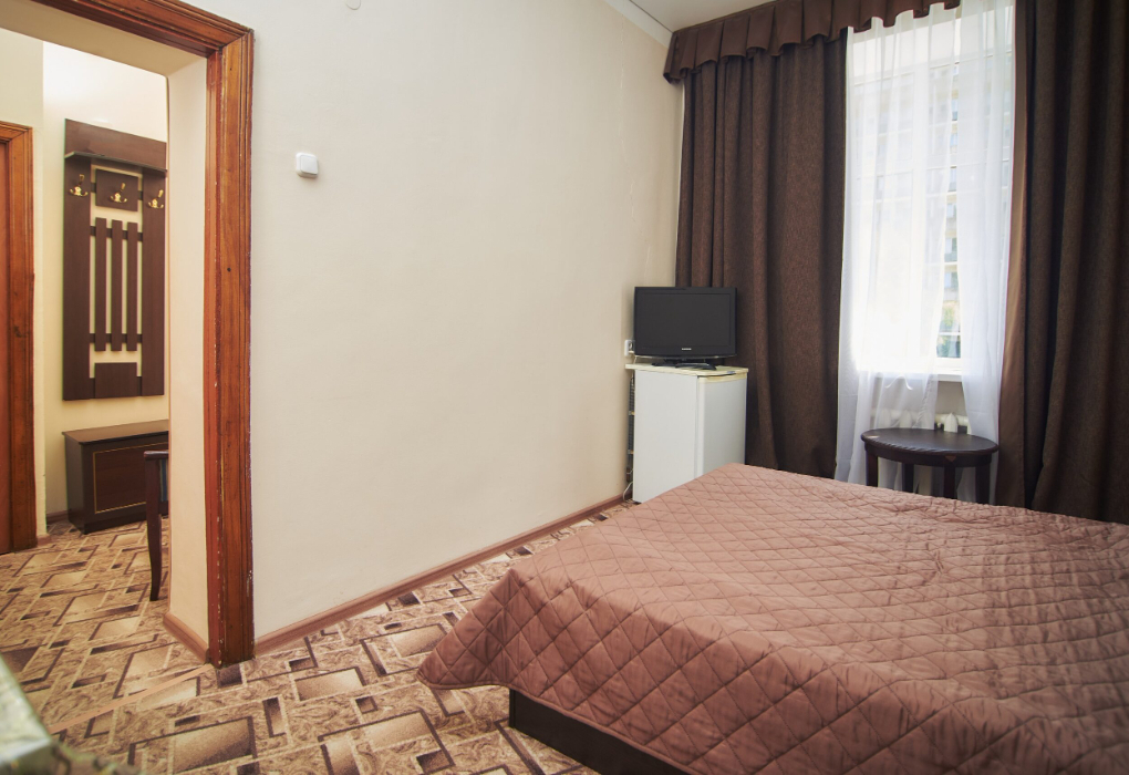 Площадь номера - 12 кв.м. 1 комната. 1 осн. место. В номере: телевизор; холодильник; душ; электрочайник; 1-спальная кровать; санузел. 1 доп. место: Раскладная кровать - может быть установлена без ограничения по возрасту.