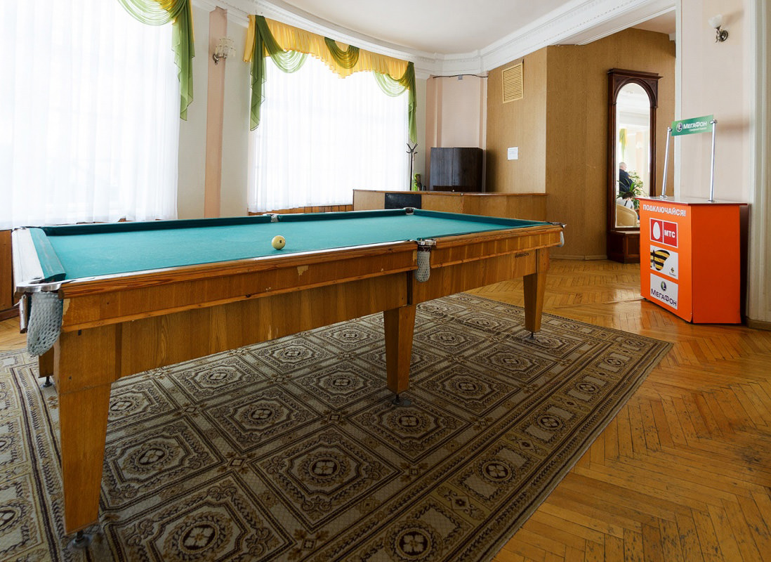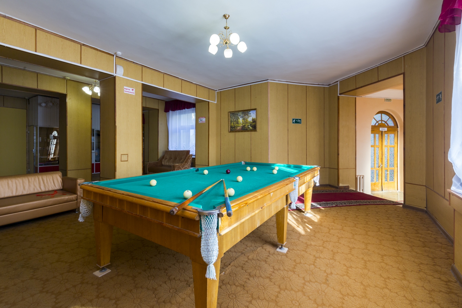 Досуг: в стоимость путевки входит и досуговая деятельность, и развлекательные мероприятия. На территории комплекса расположены библиотека, бильярдная, комната для настольных игр, дискобар, концертный зал.